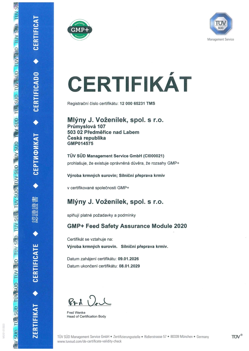 Při výrobě mouk, krupic a ostatních tržních druhů, které se získávají při mlýnském zpracování potravinářské pšenice se dvakrát denně provádí mezioperační kontrola. Laborantka na určených místech ve mlýně odebírá vzorky a analyzuje vlhkost, lepek, popel, číslo poklesu, očkovitost a granulaci. U krmiv vlhkost, popel, N-látky, vlákninu a škrob. U každé vyrobené pšeničné mouky hladké světlé, přepuštěné do zásobníku, se provádí kompletní rozbor pro výstupní kontrolu včetně reologických vlastností. Při expedici výrobku deklarujeme hodnoty základních jakostních znaků: vlhkost, popel, lepek, granulaci, očkovitost, číslo poklesu. Na požádání odběratele i výsledky Alveografu, Farinonografu a Extenzografu.