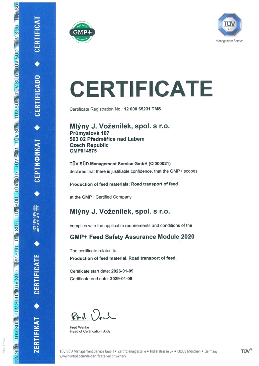 Velmi silný důraz klademe na příjem suroviny. Každá dílčí dodávka obilí je podrobena celkové analýze kvality, dle příslušné ČSN a vlastních potřeb firmy. Vzorky obilovin odebíráme pneumatickým vzorkovačem. Nakupujeme podle interního třídění a obilí je uskladněno v obilném sile tak, aby došlo k jeho postupnému enzymatickému dozrání. Následně se pro výrobu mouky namíchá ideální směs obilí pro zámel. Tato směs je 3 krát denně kontrolována v laboratoři (vlhkost, objemová hmotnost, N-látky, Zeleny test, lepek, příměsi, nečistoty a číslo poklesu).