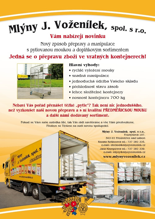 Mlýny J. Voženílek, spol. s r.o. Vám nabízejí novinku. Nový způsob přepravy a manipulace s pytlovanou moukou a doplňkovým sortimentem.
